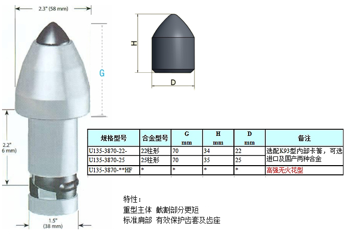 U135-3870系列掘進機截齒